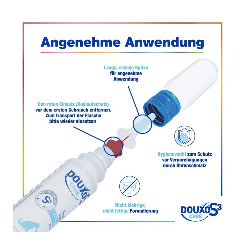 Bei Hunden und Katzen, Douxo S3 Care Ohrreiniger ist anzuwenden :