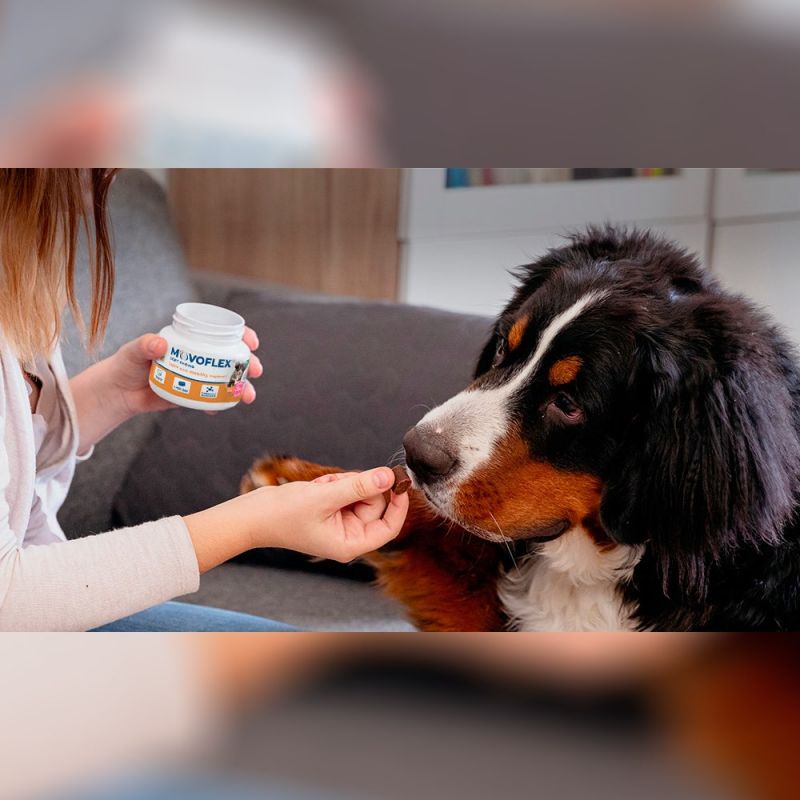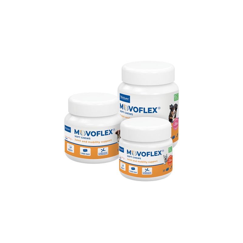 Movoflex für Hunde ist ein Ergänzungsfuttermittel in Form von schmackhaften Kaustücken, leicht zu verabreichen, speziell entwickelt für Flexibilität und Gelenkkomfort ab den ersten Anzeichen von Steifigkeit.